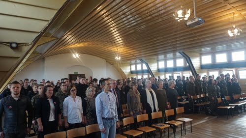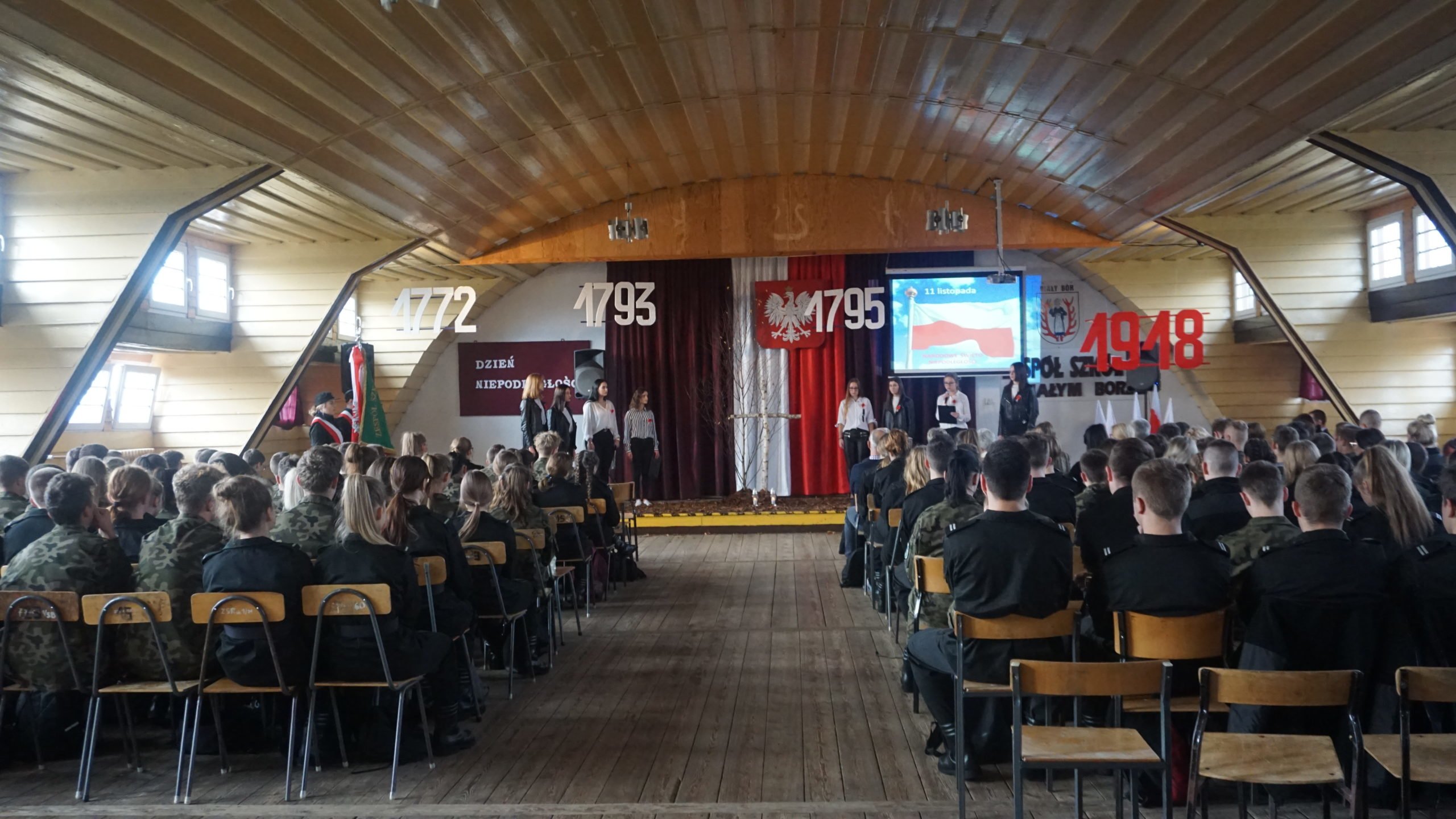 W piątek, 8 listopada 2019r. uczniowie klas I LWB i I LWS wraz z opiekunami przygotowali uroczysty apel z okazji rocznicy Niepodległości Polski. Zebrani w szkolnej auli uczniowie ubrani w mundury przystrojone w biało-czerwone kokardy i kotyliony uroczyście odśpiewali Mazurka Dąbrowskiego w ramach akcji „Niepodległa do hymnu”. Występujący na scenie aktorzy przypomnieli zebranym dramatyczną historię Polski z okresu 1772-1918. Widzowie mogli  usłyszeć poezję Antoniego Słonimskiego, Ryszarda Przymusa i Tadeusza Różewicza. W montażu artystycznym wykorzystano również utwory muzyczne, m.in. Pieśń powstańców styczniowych, Walc a-moll Fryderyka Chopina czy Biały krzyż w wykonaniu Justyny Steczkowskiej. Uczennice wykonały również znaną pieśń legionową pt. Białe róże. Apel był formą uszanowania  poległych za wolność Ojczyzny. Podkreśleniem tego hołdu były słowa skierowane do młodzieży przez św. Jana Pawła II, które wypowiedział w Gdańsku
