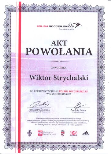 Dyrektor oraz Rada Pedagogiczna Zespołu Szkół  Nr 7 w Białym Borze serdecznie gratulują uczniowi klasy III LW – Wiktorowi Strychalskiemu, powołania do reprezentacji U-19 Polish Soccer Skills w sezonie 2019/2020.