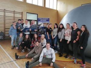 A to wszytko za sprawą mobilnego planetarium, które przyjechało z pokazem 25.10.2018 r. Chętni uczniowie mieli możliwość obejrzenia konstelacji gwiazd, poznania cech palet grupy ziemskiej i planet olbrzymów.