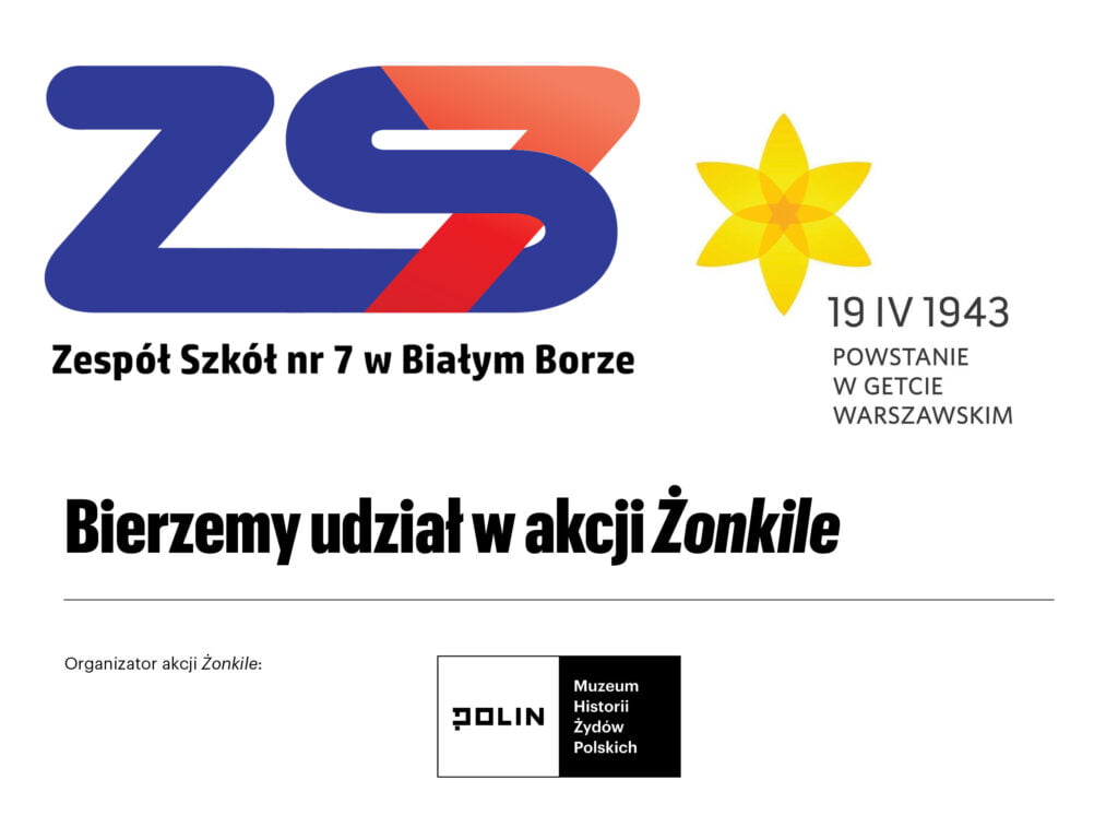 Samorząd Szkolny we współpracy z nauczycielem historii już po raz kolejny wziął udział w akcji społeczno-edukacyjnej Żonkile. Przypadającą dnia 19 kwietnia w rocznicę wybuchu powstania w getcie warszawskim – największego zbrojnego zrywu Żydów podczas II wojny światowej, a zarazem pierwszego powstania miejskiego w okupowanej Europie. Akcję organizuje Muzeum Historii Żydów Polskich POLIN .