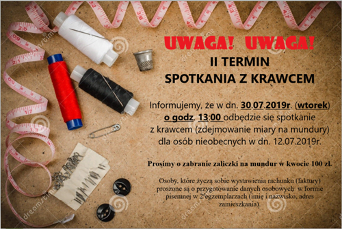Informacja dla rodziców i uczniów klas pierwszych. II termin spotkania z krawcem