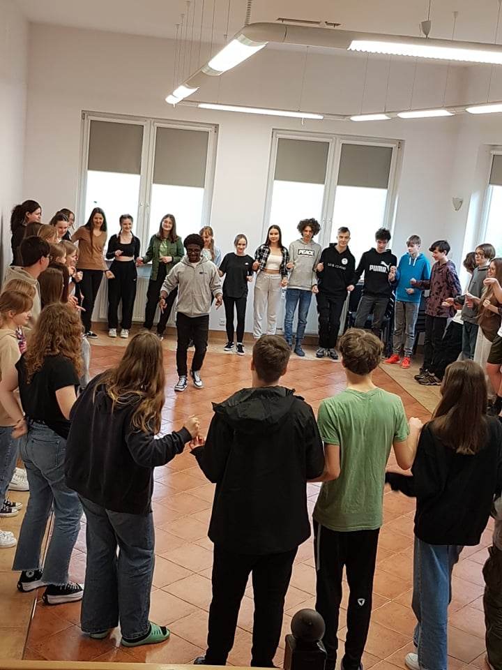 16-osobowa grupa uczniów wraz ze swoimi anglistkami, panią Oksaną Wysoczan-Kowalczyk oraz panią Agnieszką Borecką w terminie 23-27.03.2023 brała udział w obozie szkoleniowym „Euroweek – Szkoła Liderów” w Lądku Zdrój zorganizowanym przez Europejskie Forum Młodzieży przy współpracy z Urzędem Marszałkowski we Wrocławiu, Together Europe, Ministerstwem Edukacji Narodowej oraz Ministerstwem Spraw Zagranicznych.