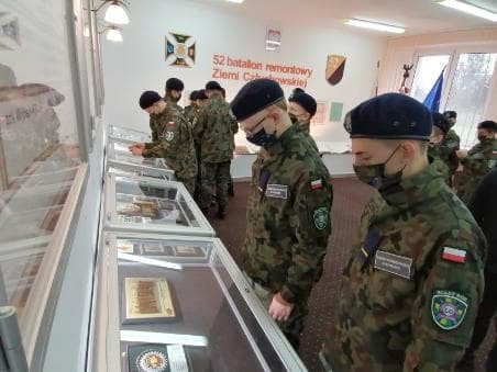 Najważniejszym przedsięwzięciem było zwiedzanie sali tradycji jednostki, możliwość obejrzenia sztandaru oraz pamiątek dokumentujących osiągniecia naszej jednostki patronackiej. Uczniowie zobaczyli również księgę honorową jednostki oraz proporzec „Przodującego Oddziału Wojska Polskiego ” którym może pochwalić się 52 brem.