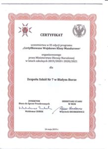 Kolejna dotacja z Ministerstwa Obrony Narodowej dla klasy certyfikowanej ZS Nr 7 w Białym Borze