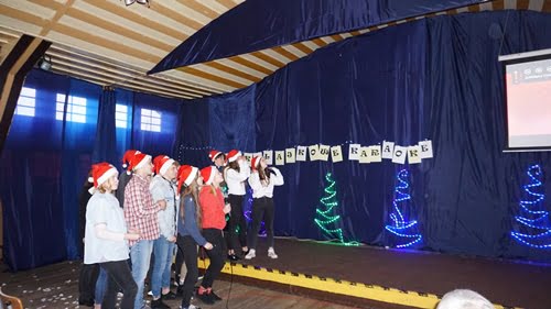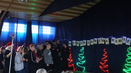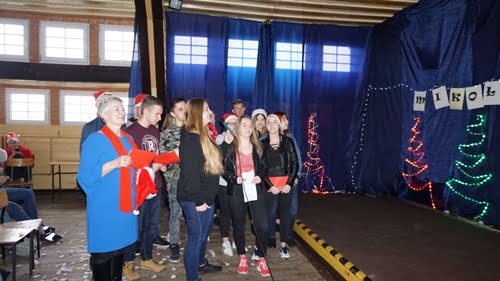 Już tradycją stało się, że 6. grudnia mury Zespołu Szkół Nr 7 w Białym Borze rozbrzmiewają świąteczną muzyką. Organizowane przez Samorząd Szkolny Mikołajkowe Karaoke, wprowadza wszystkich w świąteczną atmosferę. Każda klasa wraz z wychowawcą wykonała bożonarodzeniową piosenkę, śpiewaną w formie karaoke. Swoją piosenkę świąteczną jak co roku wykonało także Grono Pedagogiczne. Mikołaj nie mógł nas odwiedzić, ale ze słodkimi prezentami dla wszystkich zgromadzonych w auli przybyły śnieżynki. Dziękujemy wszystkim za wspólną zabawę.