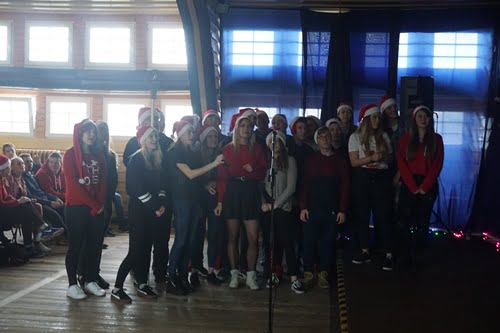 06 grudnia mury Zespołu Szkół Nr 7 w Białym Borze rozbrzmiewały muzyką a to za sprawą Mikołajkowego Karaoke, które zostało zorganizowane przez Samorząd Szkolny. Każda klasa wraz z wychowawcą wykonała świąteczną piosenkę, śpiewane w formie karaoke utwory porwały wszystkich zgromadzonych w auli do wspólnej zabawy. Swoją piosenkę świąteczną jak co roku wykonało także Grono Pedagogiczne. W tym roku Święty Mikołaj nie mógł nas odwiedzić, ale ze słodkimi prezentami dla wszystkich zgromadzonych w auli przybyły śnieżynki. Mikołajkowy koncert jest stałym elementem akcji Samorządu Szkolnego jest wspaniałą okazją do integracji klas, wspólnej zabawy i umilenia czasu oczekiwania na najpiękniejsze święta w roku. Dziękujemy wszystkim za wspólną zabawę.