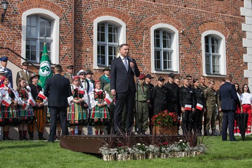 Prezydent RP spotkał się w siedzibie Regionalnej Dyrekcji Lasów Państwowych w Szczecinku z przedstawicielami jednostek samorządu terytorialnego Powiatu Szczecineckiego. Spotkanie z mieszkańcami Powiatu odbyło się, przed Zamkiem Książąt Pomorskich nad jeziorem Trzesiecko. W spotkaniu uczestniczyli m. in. wiceminister spraw wewnętrznych i administracji Paweł Szefernaker, wiceminister środowiska Małgorzata Golińska, szef Kancelarii Prezydenta RP Halina Szymańska, wicewojewoda zachodniopomorski Marek Subocz, przedstawiciele samorządów z terenu Powiatu, poczty sztandarowe Policji, Państwowej Straży Pożarnej, Nadleśnictwa Szczecinek i Koła Łowieckiego Darzbór Szczecinek, zespół „Swojacy” z Sitna, działacze organizacji pozarządowych, uczniowie ze szkół ponadpodstawowych Powiatu Szczecineckiego. W spotkaniu brali udział również uczniowie naszej szkoły.