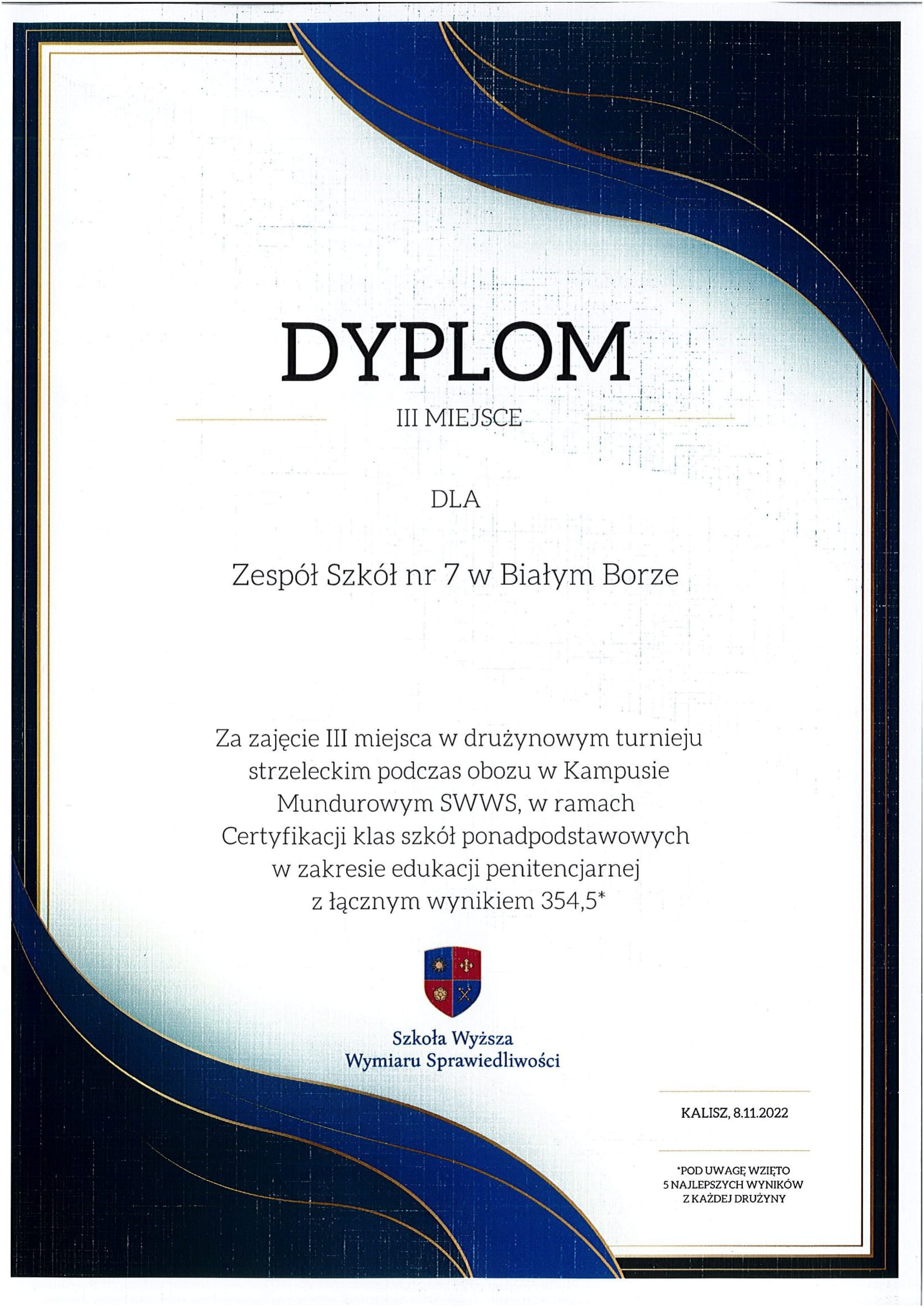 z Zespołu Szkół nr 7 w Białym Borze uczestniczyli kampusie mundurowym w Kaliszu, zorganizowanym przez Szkołę Wyższą Wymiaru Sprawiedliwości w Warszawie.