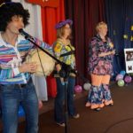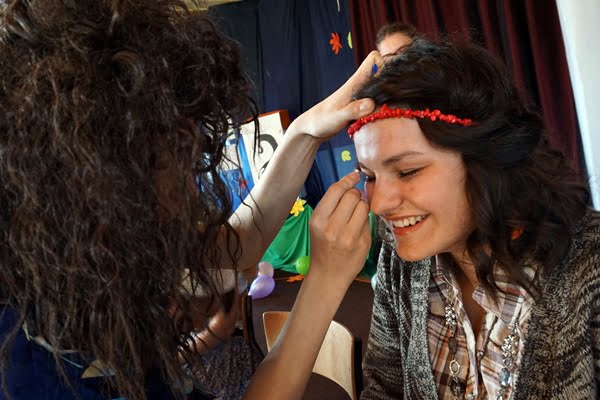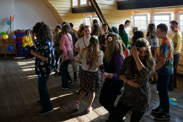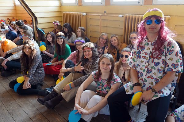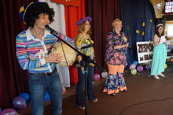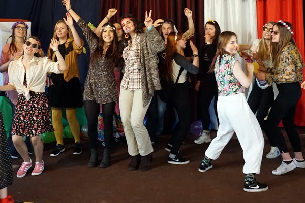 Kolorowy zawrót głowy klas pierwszych – tak nazwać można tegoroczne spotaknie zapoznawczo-integracyjne uczniów klas pierwszych. Bawiliśmy się w stylu lat 60-tych, były więc kolorowe koszule, spodnie dzwony, dzieci-kwiaty, długie włosy, okulary „lenonki” oraz muzyka i nastrój tamtych lat. Uczniowie klas pierwszych zaprezentowali swoje profile w formie piosenki, skeczu oraz tańca. Konkurencje takie jak: quiz, twister, kolorowy makijaż czy wesoła musztra przyniosły dużo radości i uśmiechów na twarzach naszych pierwszoklasistów. Wrażenia niezapomniane. Zabawę uświetnił występ zespołów PiNoBo, NoBoPi i BoPiNo. „Więc chodź pomaluj mój świat (..)” i zobacz jak się bawiliśmy.