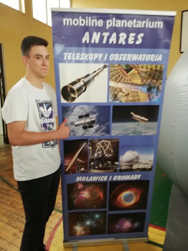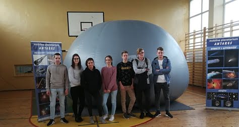A to wszytko za sprawą mobilnego planetarium, które przyjechało z pokazem 25.10.2018 r. Chętni uczniowie mieli możliwość obejrzenia konstelacji gwiazd, poznania cech palet grupy ziemskiej i planet olbrzymów. Poznania historii obserwacji astronomicznych, w szczególności roli jaką odgrywa w poznawaniu kosmosu teleskop Hubble’a. Uczniowie ugruntowali i poszerzyli swoją dotychczasową wiedzę z zakresu astronomii. Wszystko odbywało się w specjalnej kopule w sali gimnastycznej, która zabrała wszystkich w podróż w towarzystwie gwiazd. Wrażenia bezcenne.
