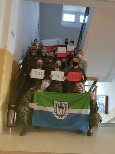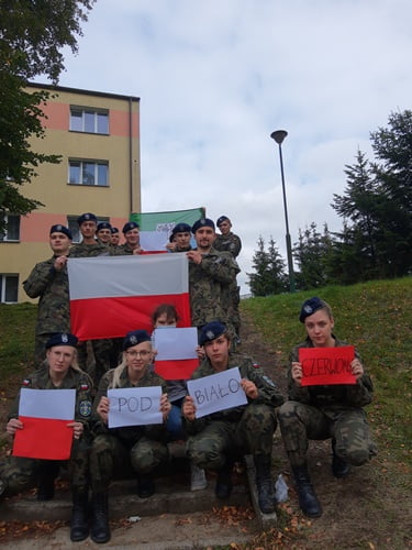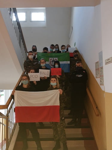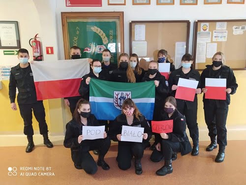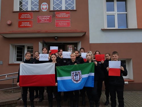 Uczniowie naszej szkoły włączyli się do akcji Pod Biało-Czerwona. Projekt ten objęty jest Honorowym Patronatem Prezesa Rady Ministrów Mateusza Morawieckiego. Zakłada on sfinansowanie przez Rząd Rzeczypospolitej Polskiej zakupu masztów i flag w każdej z gmin w Polsce, której mieszkańcy dołączą do projektu.