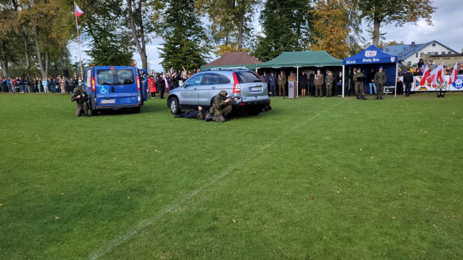 Kolejno nastąpiła prezentacja umiejętności uczniów szkoły. Młodzież przygotowała widowiskowy pokaz samoobrony. Po czym nastąpiła uroczysta defilada przed trybuną honorową. Po zakończeniu ceremonii ślubowania wszyscy zebrani goście udali się na tradycyjną już, pyszną wojskową grochówkę. Święto szkoły zaszczyciła licznie zgromadzona publiczność: rodzice, rodziny i znajomi kadetów klas pierwszych, uczniowie szkół podstawowych  i mieszkańcy Białego Boru.