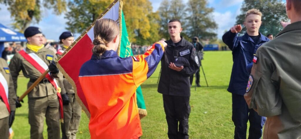 Zaszczytu złożenia przyrzeczenia na sztandar szkoły dostąpili wyróżniający się uczniowie klas pierwszych: Aleksander Mroczkowski z oddziału przygotowania wojskowego, Michał Sadlak z klasy policyjnej,  Kornel Gemza z klasy służby więziennej oraz Aleksandra Niedźwiedź z klasy bezpieczeństwa wewnętrznego i ratownictwa.