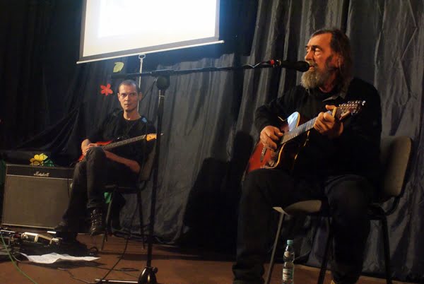Artyście akompaniował na drugiej gitarze jego syn Krzysztof. Jerzy Stachura zaprezentował pieśni swojego wuja Edwarda Stachury oraz własne z właśnie wydanej płyty pt.: „Kup sobie wiersz”. Uczniowie naszej szkoły licznie zgromadzeni na widowni oraz goście. Impreza miała charakter otwarty dla wszystkich mieszkańców Białego Boru i okolic.