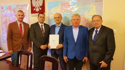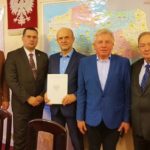 Na początku grudnia br. w Warszawie p. Krzysztof Lis – Starosta Szczecinecki wraz z członkiem Zarządu – p. Krzysztofem Zającem oraz z p.o. skarbnika Powiatu p. Waldemarem Kmieciem podpisali umowę z Dyrektorem Biura ds. Proobronnych  – p. Waldemarem Zubkiem o udzielenie dotacji celowej.