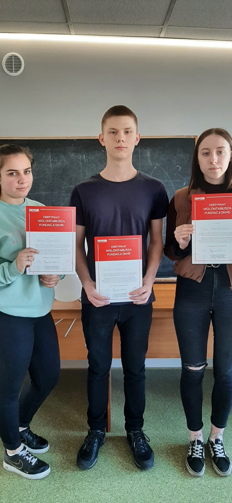 W dniu 25 marca 30 pełnoletnich uczniów naszej szkoły, głównie tegorocznych maturzystów, podjęło bardzo ważną decyzję polegającą na poszerzeniu grupy potencjalnych dawców szpiku. W związku z tym gościliśmy panią Patrycję Szczerbuk – wolontariuszkę Fundacji DKMS.  Fundacja DKMS jako Ośrodek Dawców Szpiku zajmuje się przede wszystkim pozyskiwaniem potencjalnych dawców alogenicznych (niespokrewnionych) szpiku i krwiotwórczych komórek macierzystych. Cieszymy się, że nasi uczniowie w tak dojrzały sposób podeszli do tematu pomagania potrzebującym,  dla których często jedyną realną szansą wyleczenia jest przeszczep szpiku od zdrowego dawcy. Pani Patrycja jest studentką Katedry Ratownictwa Medycznego na Akademii Nauk Stosowanych w Pile, i dlatego zaprezentowała uczniom klas o profilu Bezpieczeństwo Wewnętrzne i Ratownictwo swój kierunek studiów i zachęcała naszą młodzież do podjęcia dalszej nauki w Pile.