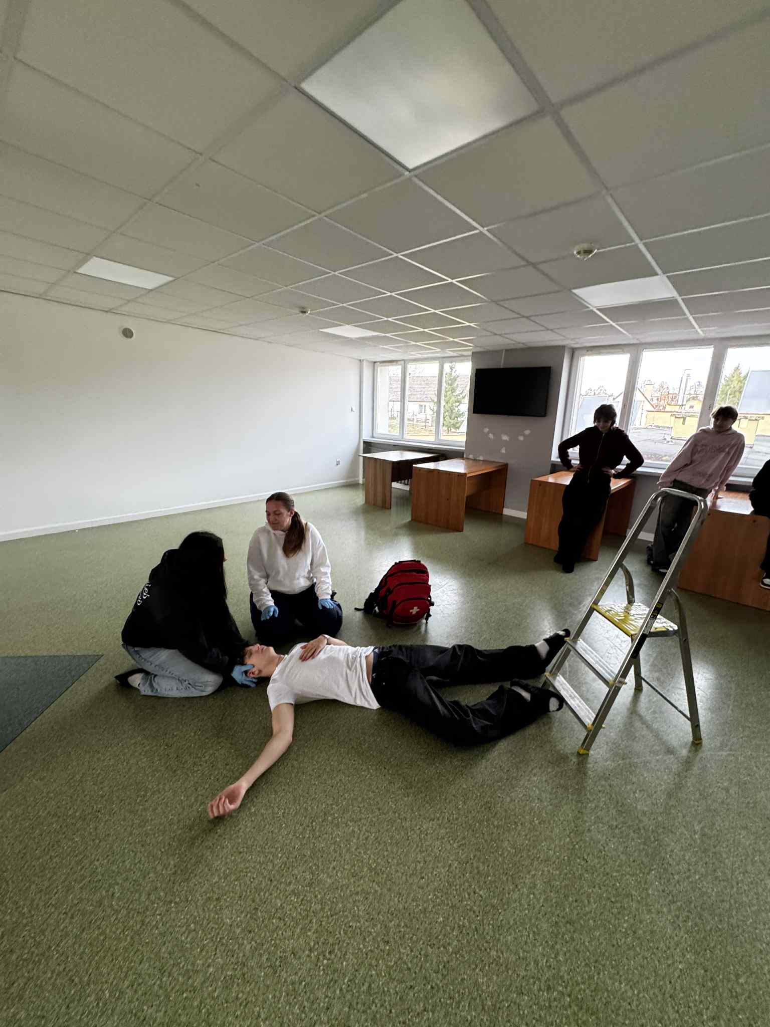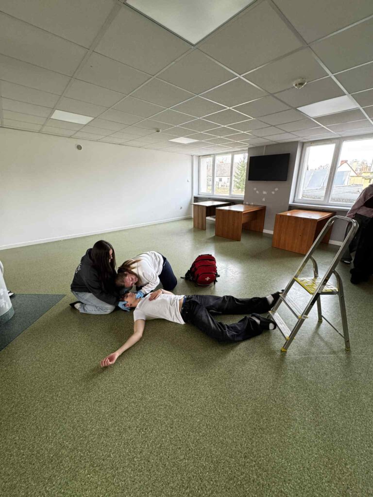 Podczas zajęć uczniowie mieli okazję przećwiczyć zdobyte już umiejętności i pogłębić wiedzę na temat postępowania w różnych sytuacjach poprzez uczestnictwo w pozoracjach ratowniczych, czyli symulowanych zdarzeniach, na które musieli odpowiednio zareagować i udzielić pierwszej pomocy osobie poszkodowanej.