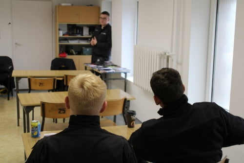 Tym razem uczniowie rozmawiali z funkcjonariuszami m. in. o rekrutacji prowadzonej do Służby Więziennej oraz o tym, jak wygląda codzienna służba w dziale ochrony. O swoich doświadczeniach związanych z wstąpieniem do Służby Więziennej opowiedział m. in. szer. Oskar Rodziewicz, który obecnie jest w służbie przygotowawczej w Zakładzie Karnym w Czarnem, a w 2021r. zakończył naukę w naszej szkole.