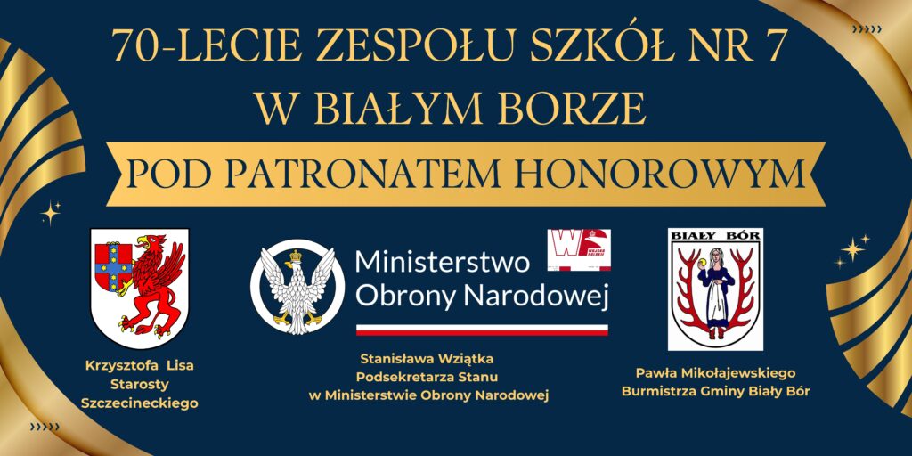 Zespół Szkół nr 7 w Białym Borze ma zaszczyt ogłosić, że Zjazd Absolwentów z okazji 70-lecia istnienia szkoły odbędzie się pod patronatem honorowym: